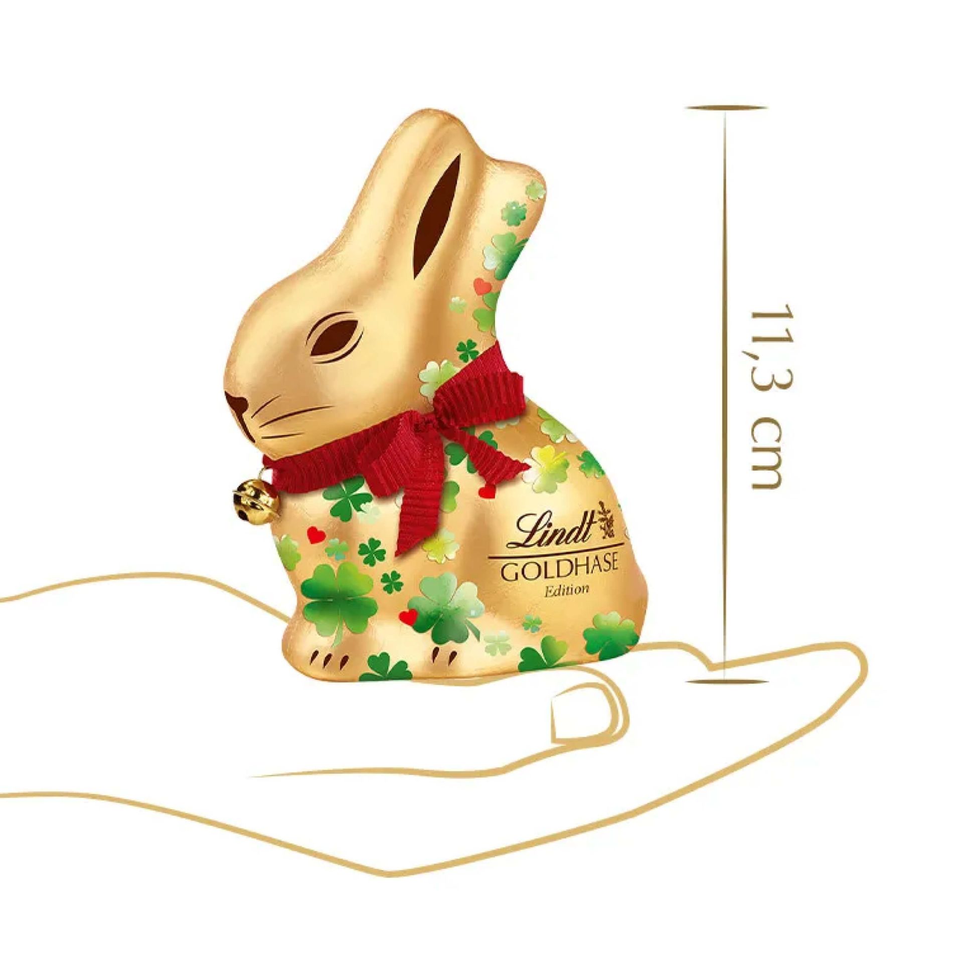 - Ikonisches Goldhasen-Design mit rotem Band & Glöckchen